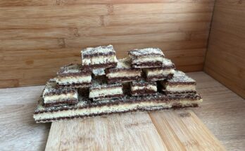 - Ostatnią warstwą będą ponownie konfitury porzeczkowe, które przykrywamy ostatnim płatem wafla.