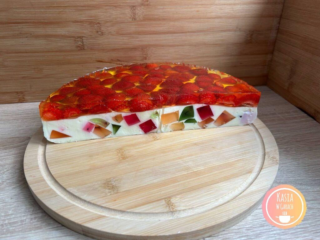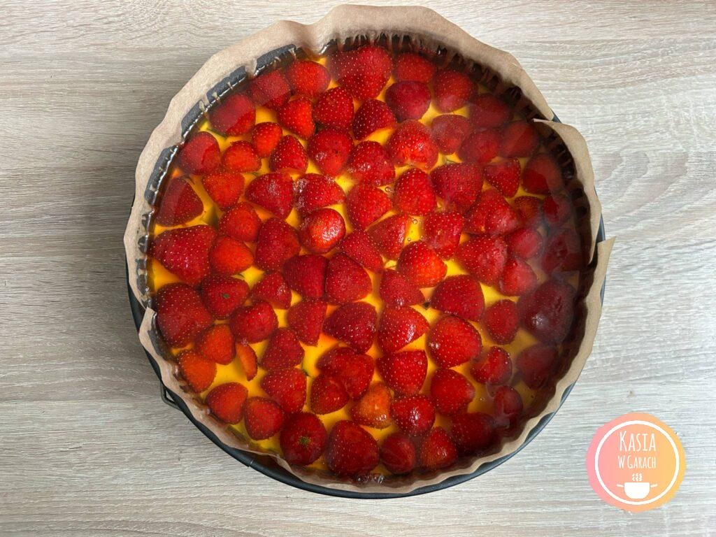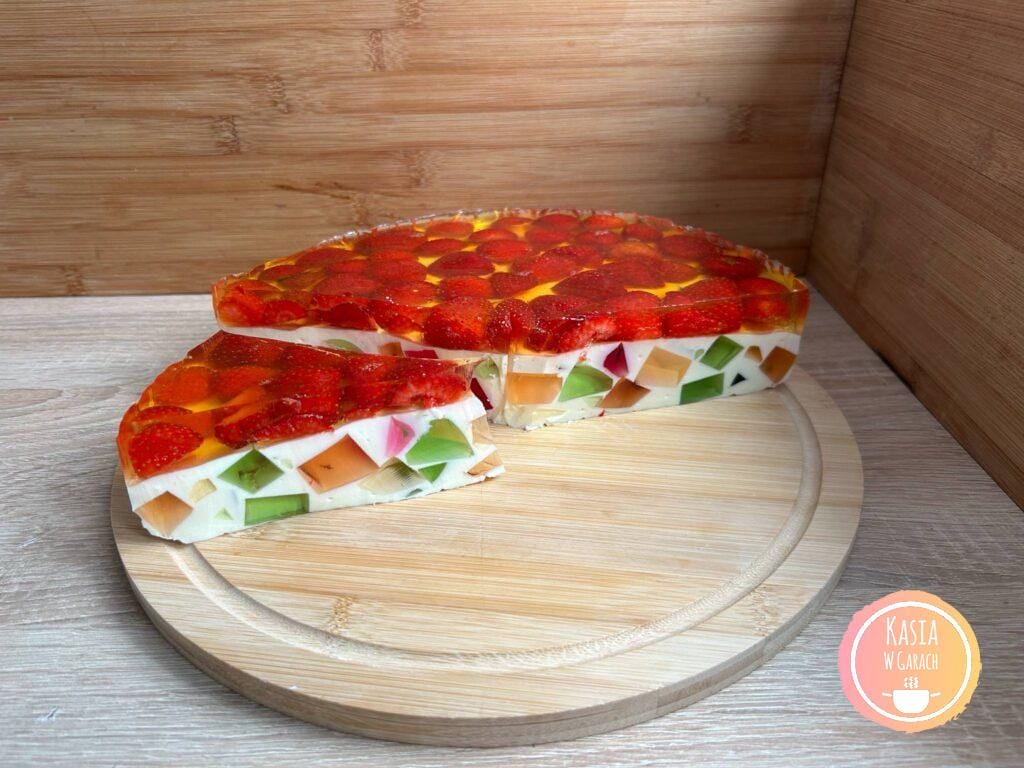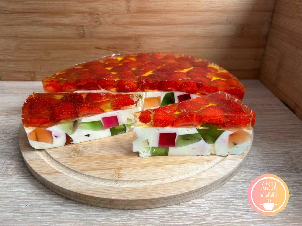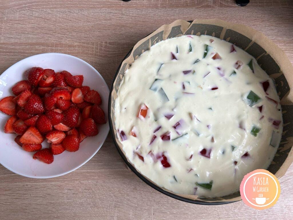 10. Na zastygłej masie układamy owoce i zalewamy tężejącą galaretką