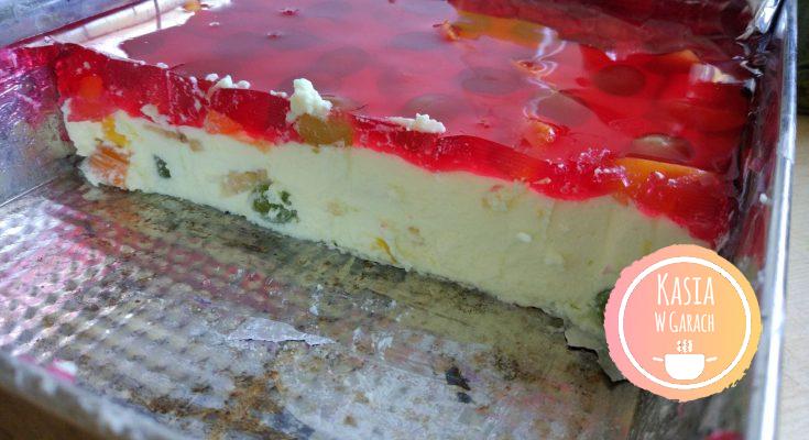 Sernicze przepyszny.Robie go czesto.Nie jest to ciasto pracochlonne.Sama mase serowa robi sie w 5 min(pod warunkiem,ze galaretka juz przestygla i owoce pokrojone.Ja do srodka masy dodaje brzoskwinie z puszki,lub ananas.Na wierzch to samo.PYCHA!!!!!