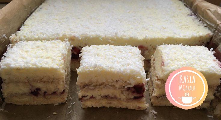 Ciasto idealne dla miłośników aksamitnej budyniowej masy przełożonej herbatnikami oraz wiórkami kokosowymi :). Szybkie i proste w wykonaniu ciasto bez pieczenia.