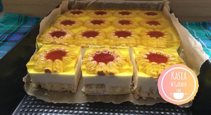 • po tym czasie na ciasto wylewamy tężejąca cytrynową galaretkę, całość wstawiamy do lodówki na kilka godzin do całkowitego zastygnięcia