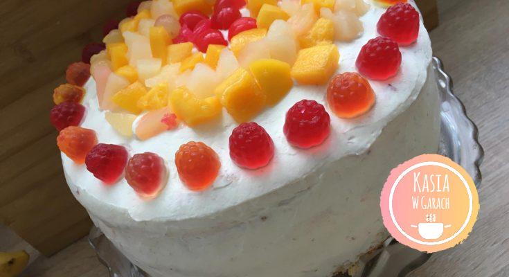 • owoce lub ulubione dodatki do dekoracji tortu ( ja użyłam żelków i owoców z syropu z puszki)