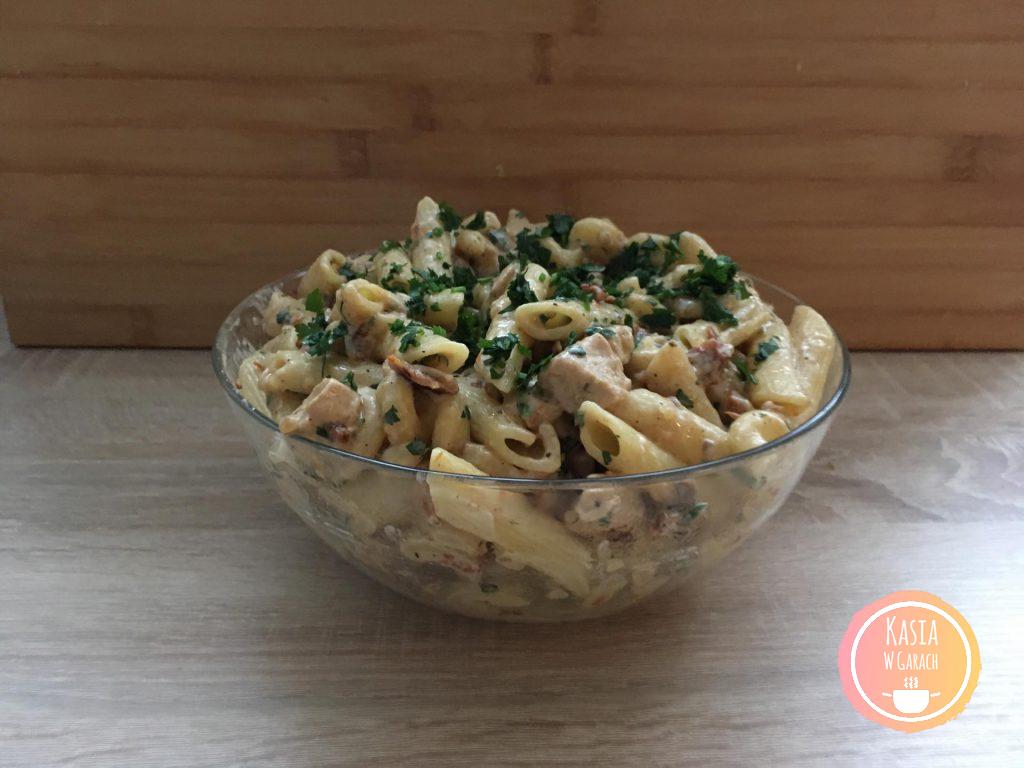 - w międzyczasie w osolonej wodzie gotujemy makaron,