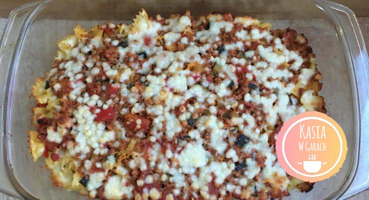 Zapiekanka makaronowa z mięsem mielonym i warzywami to świetny pomysł na pyszny obiad lub kolację dla całej rodziny. Szybka i prosta w przygotowaniu.