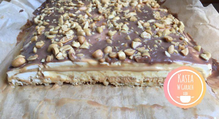 Przepyszny deser wzorowany na popularnym batoniku. Proste w przygotowaniu ciasto bez pieczenia. Jest tak dobre że cała blacha znika w mgnieniu oka. Ciasto jest bardzo delikatne, jeśli chcemy aby było bardziej „stałe” możemy użyć mniej masy kajmakowej :).