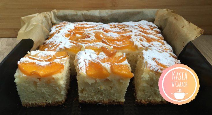 • na wierzchu ciasta wykładamy owoce, u mnie odsączone z syropu i pokrojone brzoskwinie,