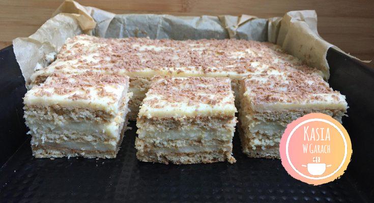 - pieczemy po kolei trzy blaty w blaszce ( ja użyłam o wymiarach 30×26 cm) wyłożonej papierem do pieczenia w temperaturze 170-180 stopni, do momentu aż ładnie się zrumienią.
