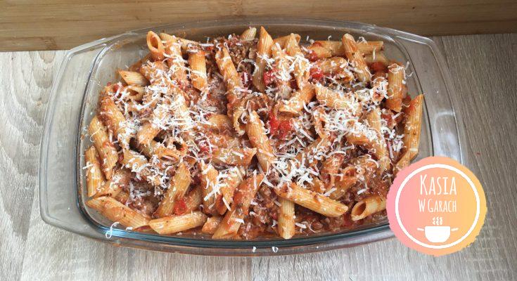 - na koniec gotowe danie doprawiamy do smaku, łączymy z ugotowanym, odcedzonym makaronem. Przed podaniem oprószamy startym serem.