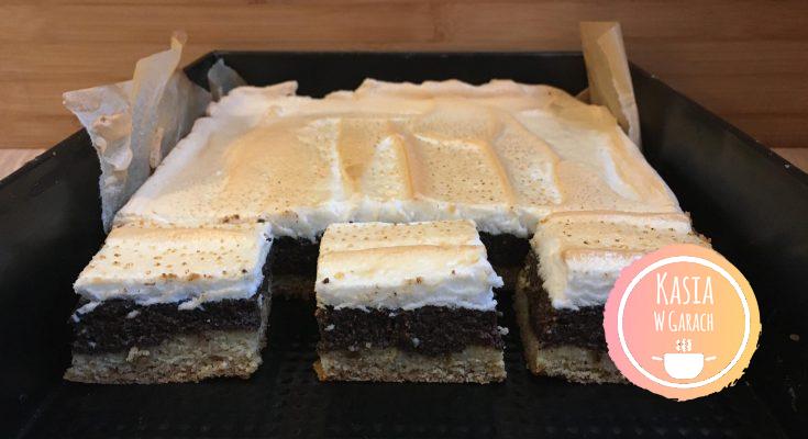 - masę białkową wykładamy i rozprowadzamy po cieście, następnie ponownie wstawiamy do piekarnika na ok 15 minut i pieczemy do momentu aż piana nam się ładnie zrumieni.
