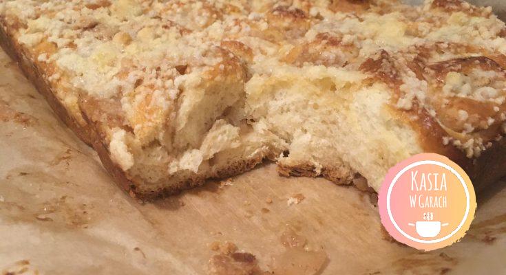 - przed włożeniem do piekarnika po wierzchu drożdżówkę posypujemy rozrobioną kruszonką,