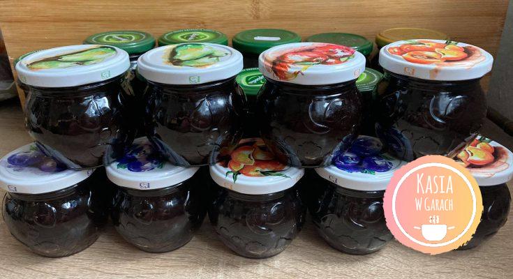 - dżem zagotowujemy. Ja słoiki układałam po 3-4 sztuki na dużym talerzu. Przygrzewałam ok 1 minuty w kuchence mikrofalowej. Do ciepłych słoików nakładamy gorący dżem. Wycieramy ranty słoików do sucha, zakręcamy zakrętkę i układamy na ściereczce do góry dnem a następnie przykrywamy szczelnie kocem. Zostawiamy do całkowitego ostygnięcia. Najlepiej czekamy do kolejnego dnia. Dzięki przygrzewaniu słoików i przykryciu kocem zwiększamy prawdopodobieństwo że słoiki dobrze się zamkną i nie będziemy musieli ich dodatkowo pasteryzować.