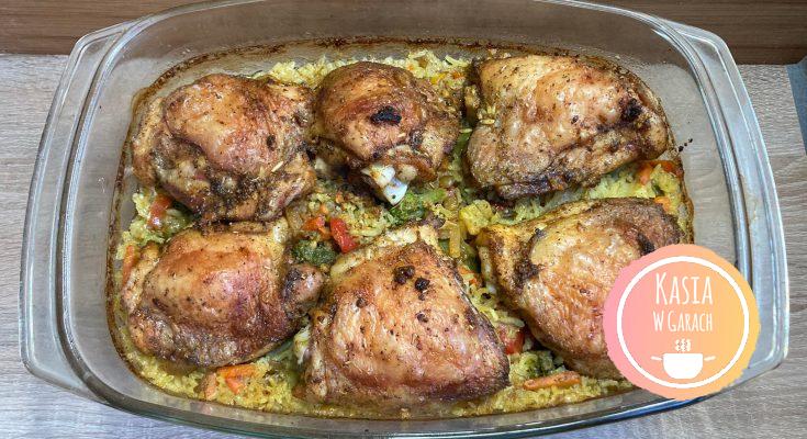 Kurczak pieczony na ryżu z warzywami to pyszny jednogarnkowy obiad który praktycznie robi się sam :). Możemy użyć dowolnie przez nas ulubionych gotowych mrożonych mieszanek warzyw, ja akurat miałam hinduską. Minimalny nakład pracy i pyszny, obiad dla całej rodziny gotowy!.