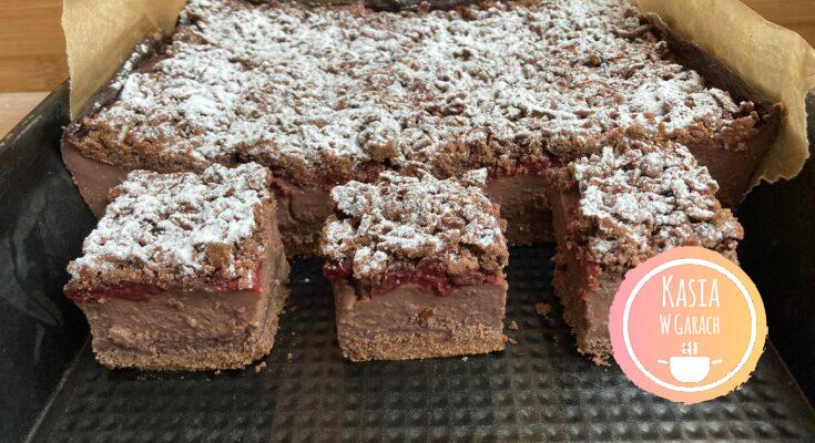 - gotowe ciasto wstawiamy do piekarnika nagrzanego do 170-180 stopni i pieczemy ok godzinę aż ładnie się zrumieni, po upieczeniu odstawiamy do ostygnięcia. Ja ciasto włożyłam na noc do lodówki i kroiłam na drugi dzień.