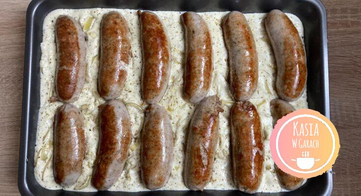 - Zapiekana biała kiełbasa w sosie cebulowo-chrzanowym wyśmienicie smakuje w towarzystwie surówki z kiszonej kapusty.