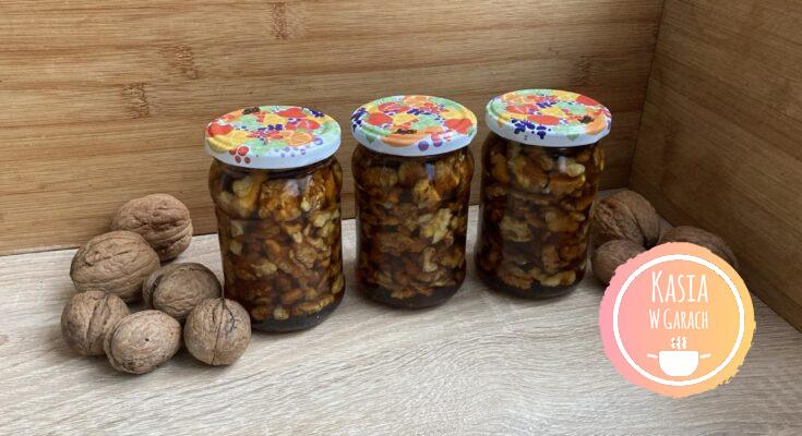 • orzechy włoskie w miodzie pasteryzowałam w garnku z wodą ok 6-7 minut od zagotowania, następnie wyjęłam słoiki i ustawiłam do góry dnem, okryłam szczelnie kocem i zostawiłam do całkowitego ostygnięcia.
