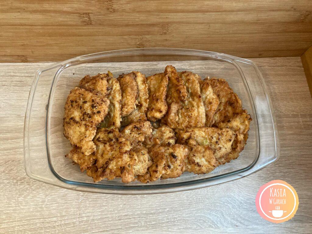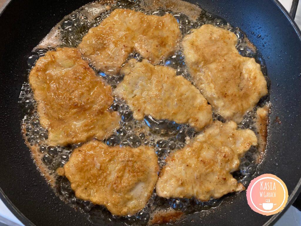 - kotleciki smażymy na rozgrzanym oleju na średnim ogniu na złocisty kolor z obu stron, po usmażeniu przekładamy na ręcznik papierowy aby odsączyć z nadmiaru tłuszczu,