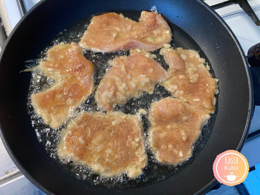 - oblepione ciastem/marynatą kotlety odstawiamy do lodówki na ok 1-2 godziny aby mięso przesiąkło aromatem,