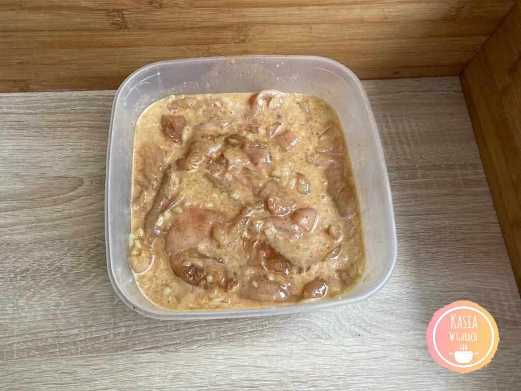 - do powstałego ciasta przekładamy pojedynczo nasze kawałku kurczaka i dokładnie obmaczamy i mieszamy je w marynacie/cieście ( ja robiłam to ręcznie, można użyć łyżki),