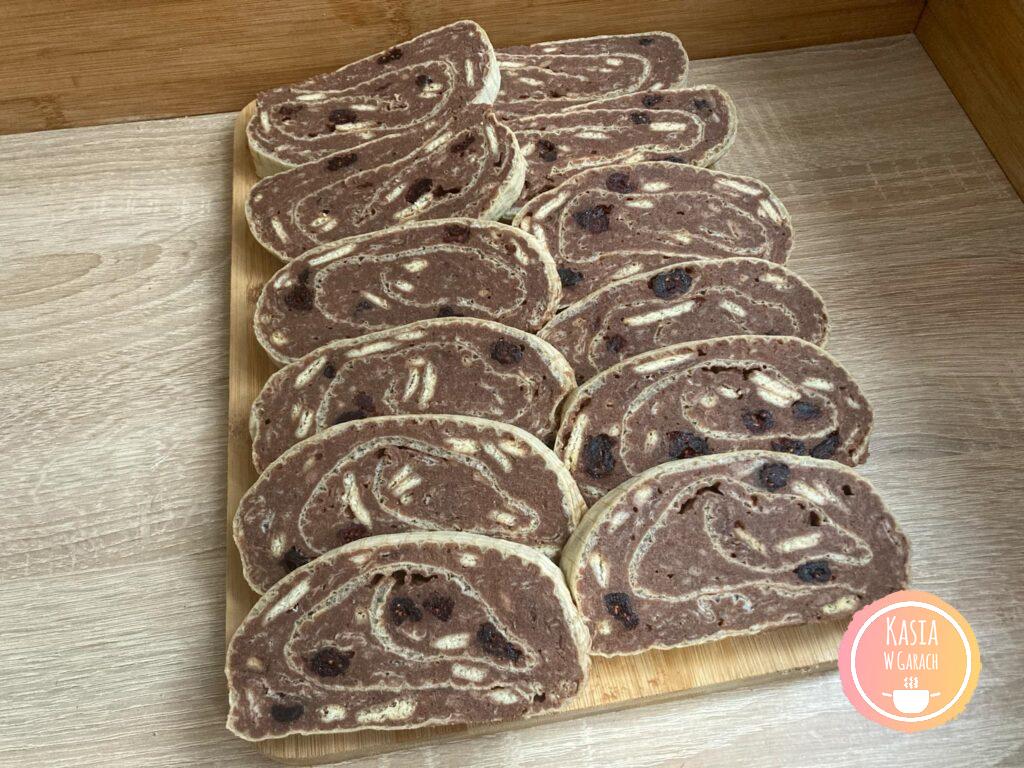 • Na drugi dzień kroimy i podajemy. Rolada waflowa z galaretką i bakaliami smakuje wyśmienicie.