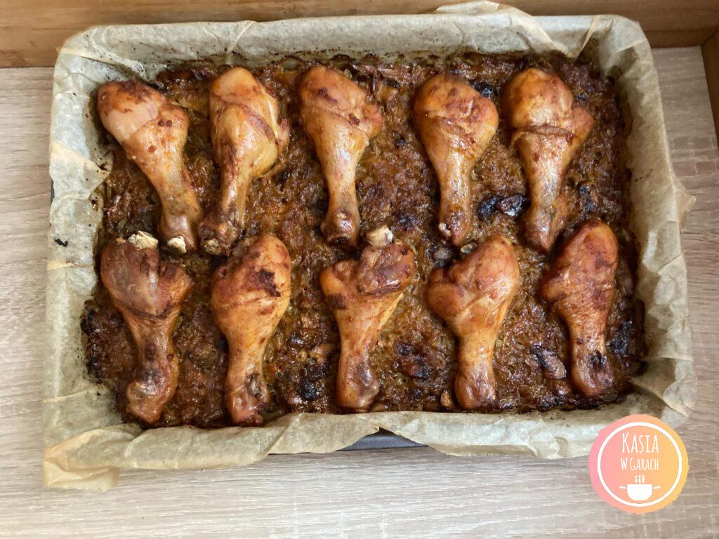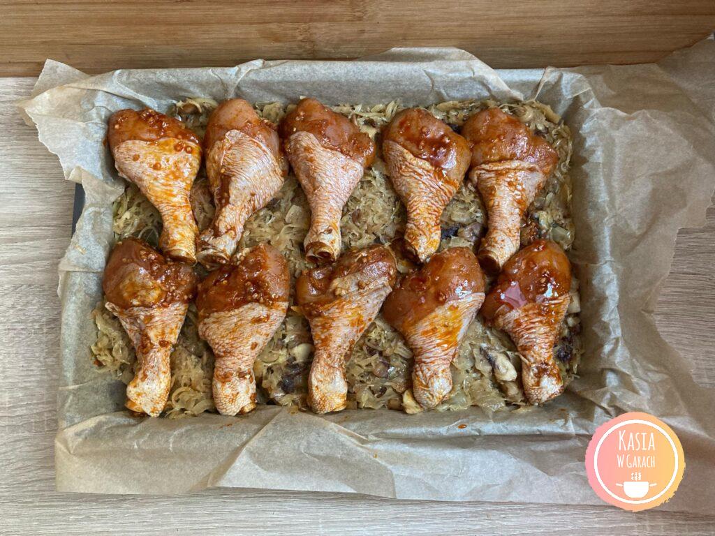 - na kapustę układamy udka. Przykrywamy z wierzchu folią aluminiową.