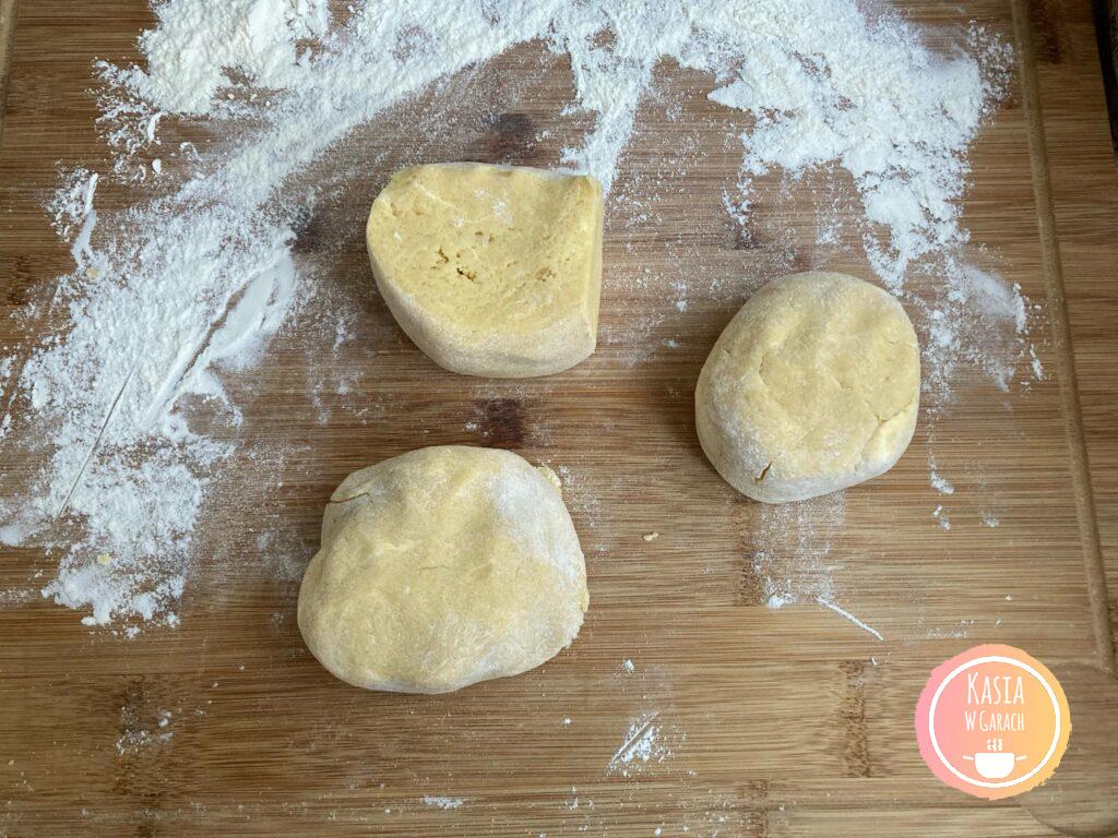 - 3 pełne szklanki mąki pszennej, składniki odmierzane szklanką o pojemności 250 ml