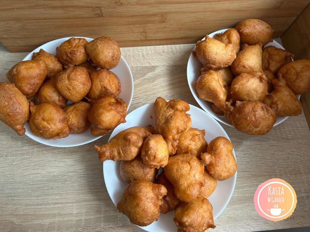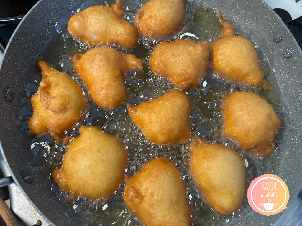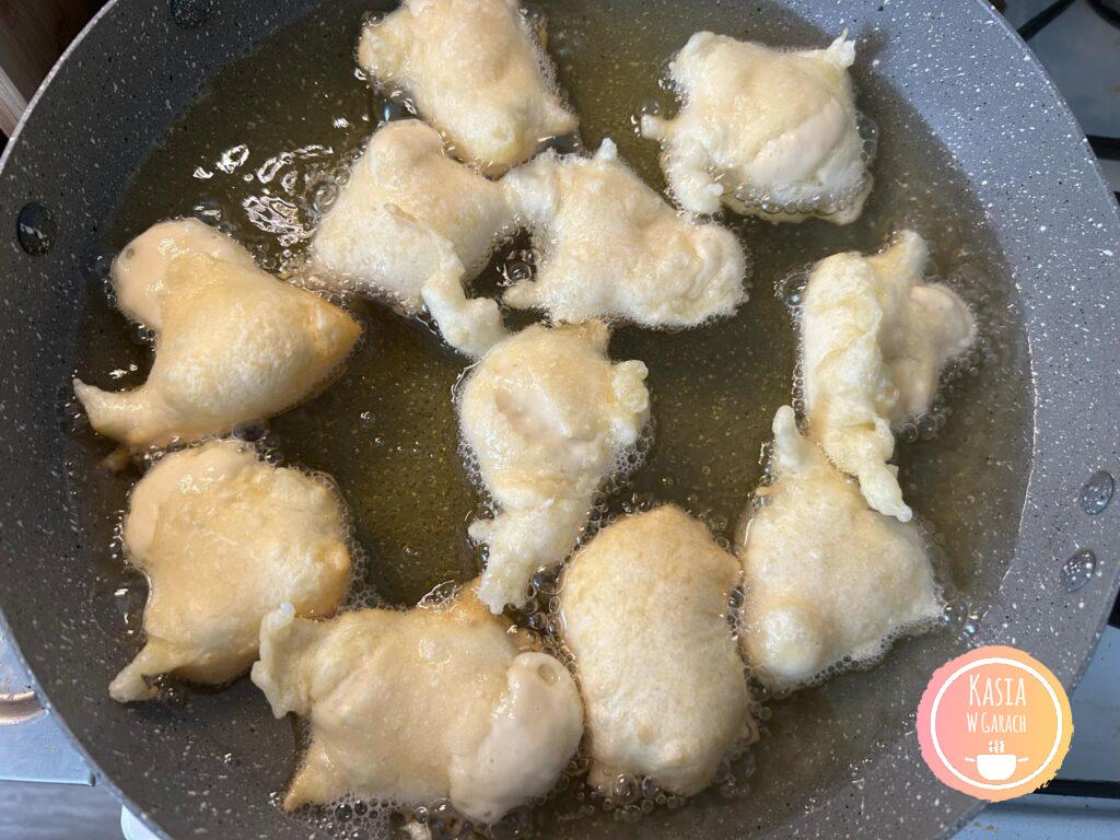 - Jedną łyżką nabieramy porcję ciasta a drugą ściągamy na gorący olej. Pączuszki smażymy partiami na średnim ogniu kilka minut co jakiś czas delikatnie obracając do momentu aż się zezłocą.