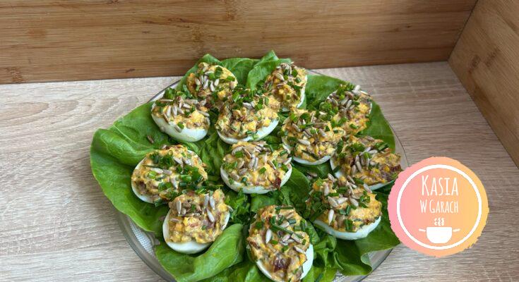 Jajka faszerowane suszonymi pomidorami i prażonym słonecznikiem są przepyszne i bardzo proste w przygotowaniu. Idealnie sprawdzą się jako imprezowa przekąska, na kolację lub na Świąteczny stół. To jedne z moich ulubionych jajek i często przygotowuje je na różne rodzinne imprezy. Jajka faszerowane suszonymi pomidorami i prażonym słonecznikiem możemy przygotować dzień wcześniej i przechowywać w lodówce w pojemniku.