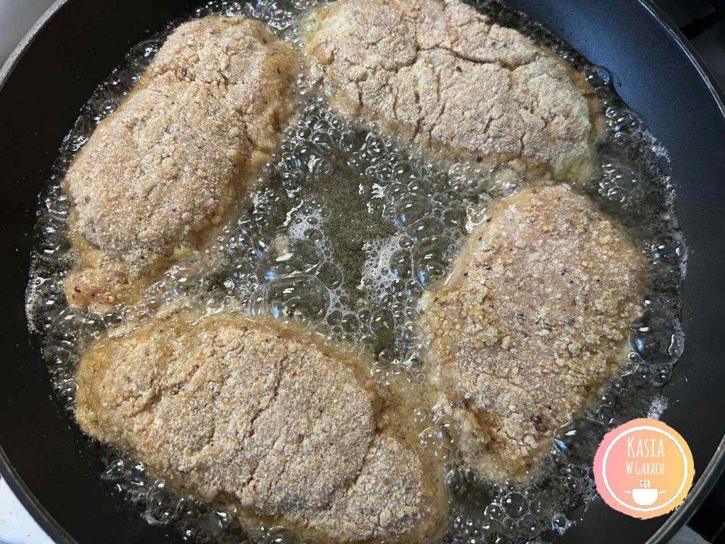 - tak przygotowane mięso panierujmy kolejno w mące, rozmąconych jajkach i w bułce tartej lekko spłaszczając je w dłoniach.