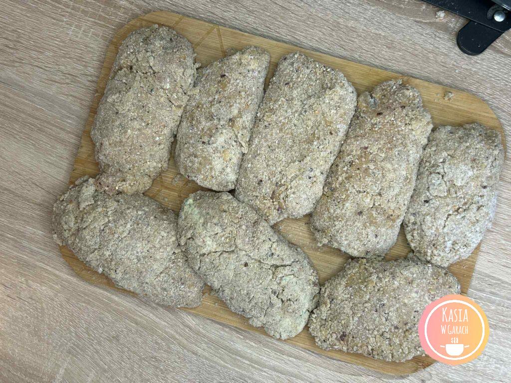 - filety przekrajmy wzdłuż na pół i rozbijamy tłuczkiem z dwóch stron tak jak na tradycyjne kotlety.