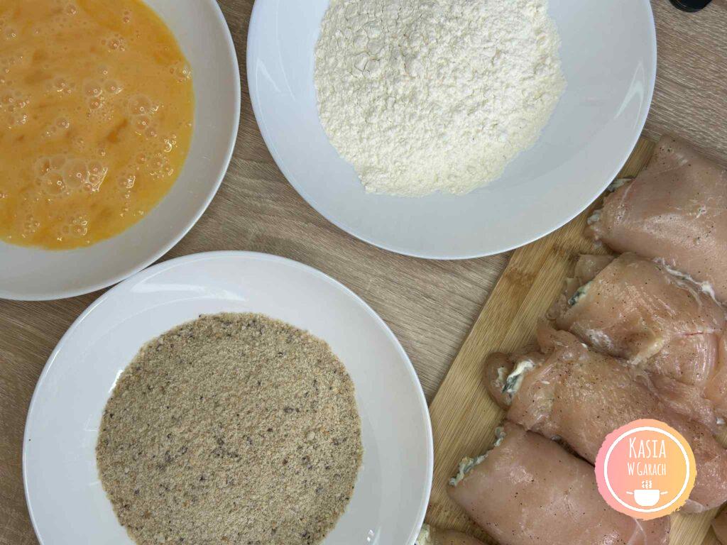 - mąka pszenna, jajka i bułka tarta do panierowania