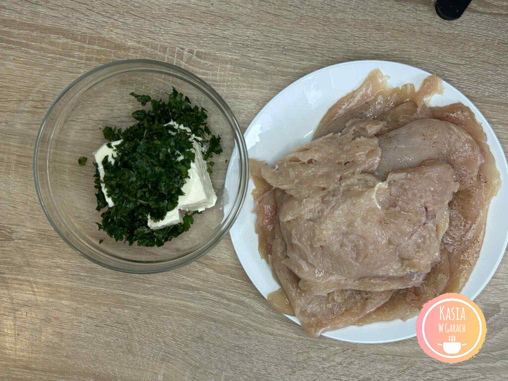 - Roladki z kurczaka z serkiem topionym podajemy z ugotowanymi ziemniakami i surówką
