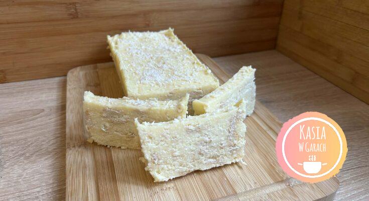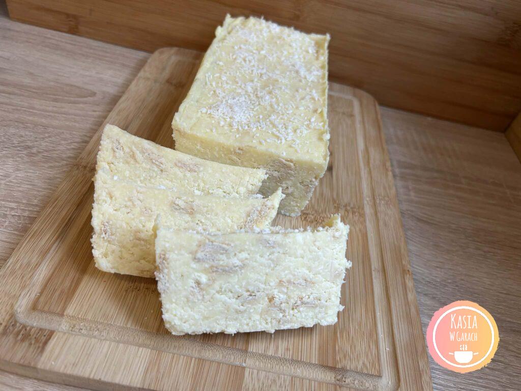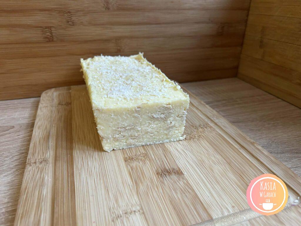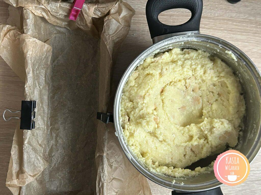 - Powstałą masę przekładamy do wyłożonej papierem do pieczenia małej formy keksowej. wyrównujemy i odstawiamy do stężenia i schłodzenia.