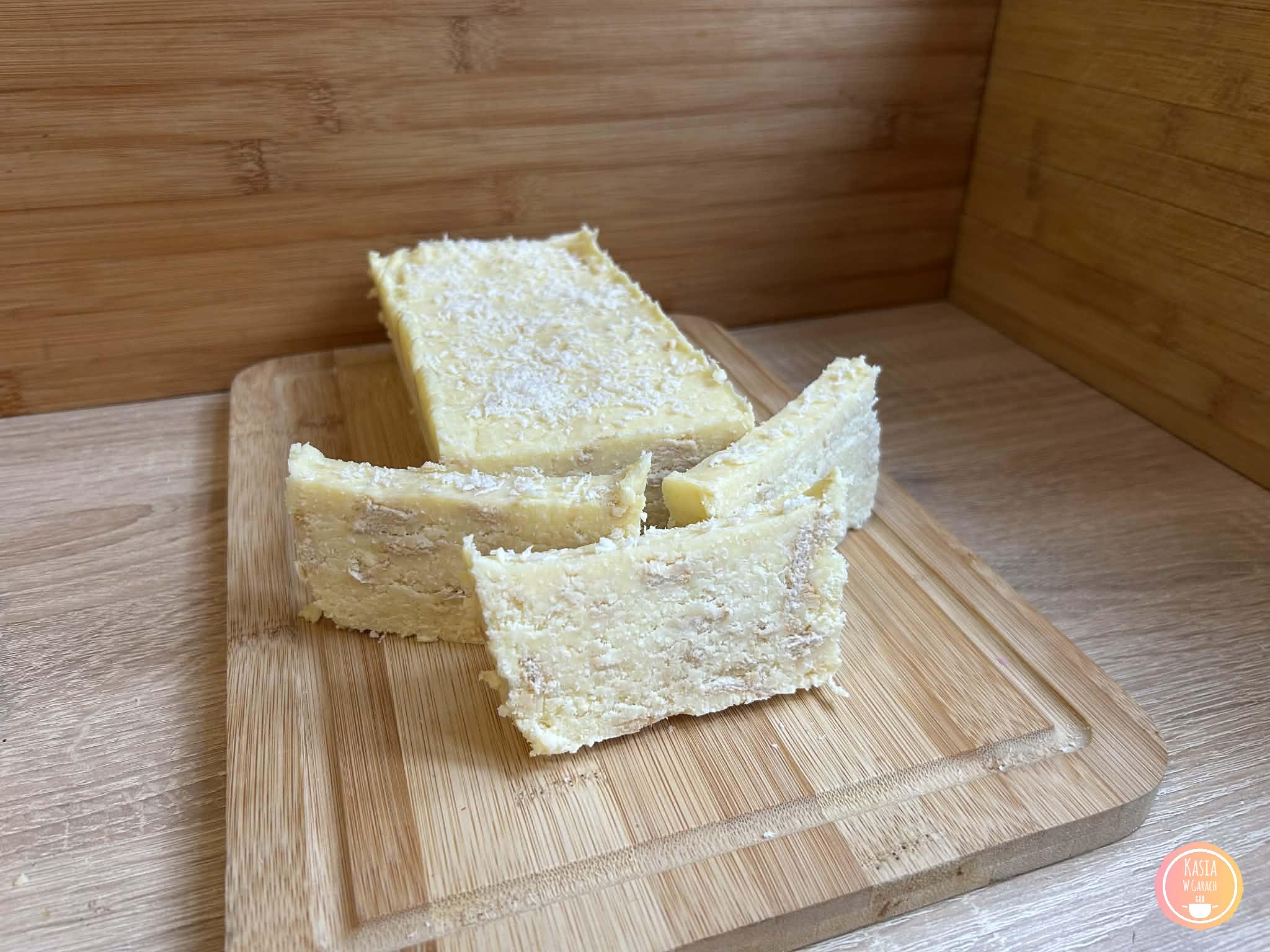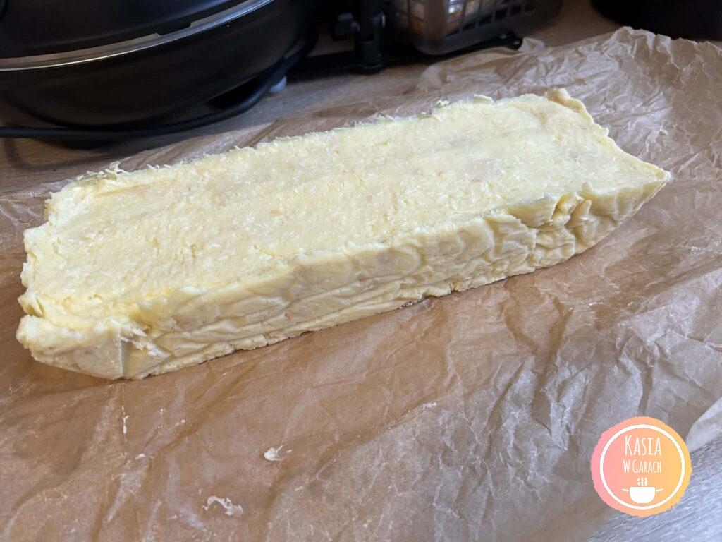 - Powstałą masę przekładamy do wyłożonej papierem do pieczenia małej formy keksowej. wyrównujemy i odstawiamy do stężenia i schłodzenia.