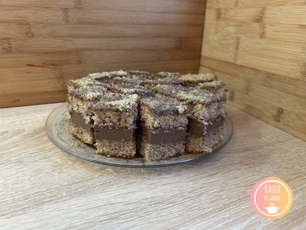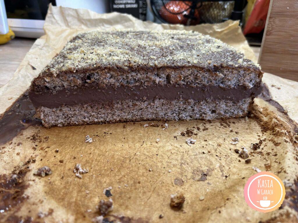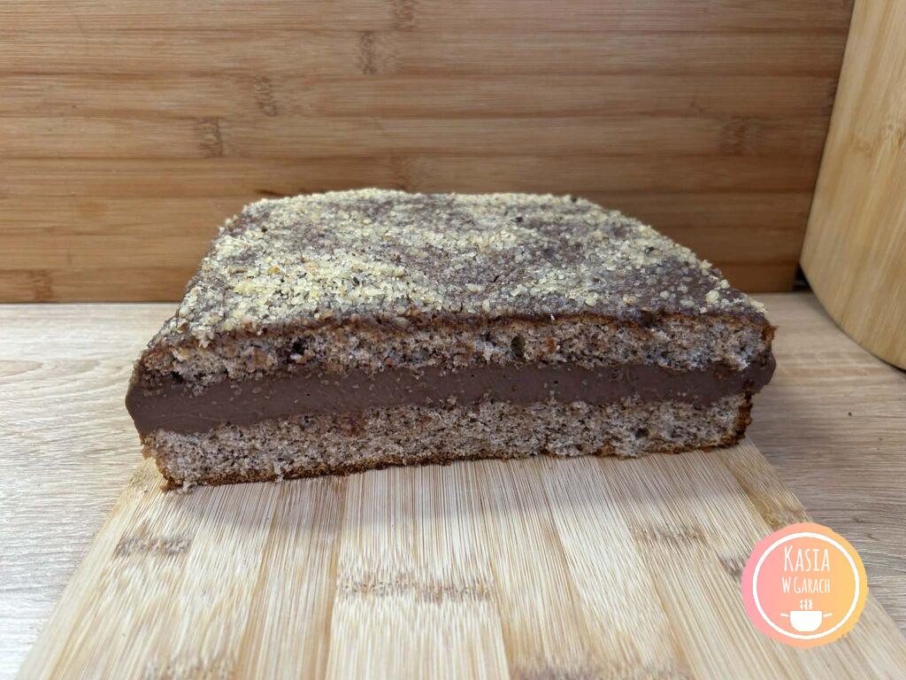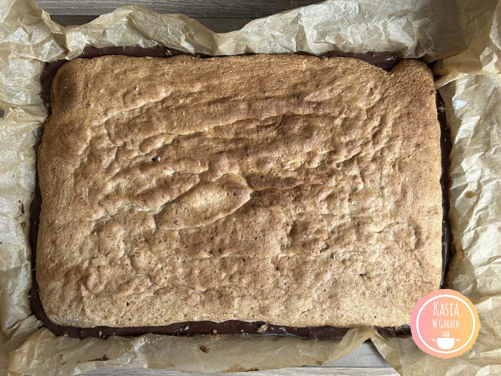 • Wierzch ciasta polewamy polewą i posypujemy orzechami.