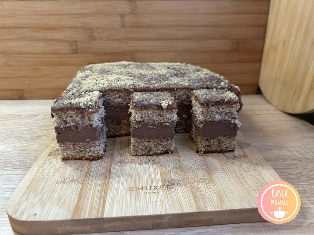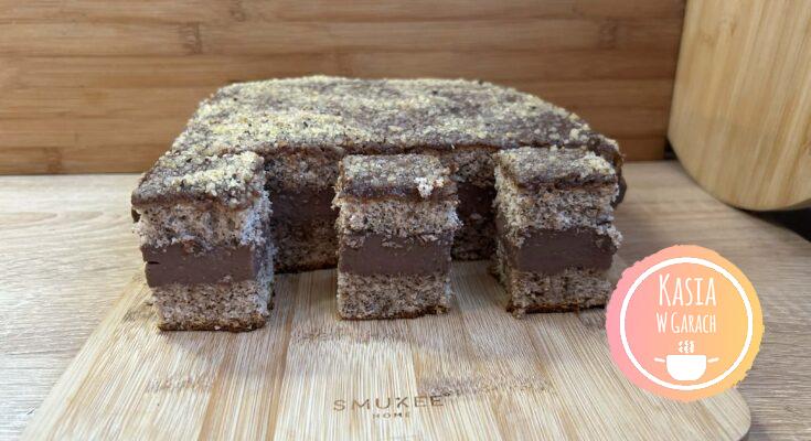 Ciasto Orzechowa Pokusa to przepyszne połączenie orzechowego ciasta biszkoptowego z kremową, czekoladową masą budyniową. Pięknie się prezentuje na talerzu i dobrze się kroi. Idealne na różnego rodzaju uroczystości czy święta.