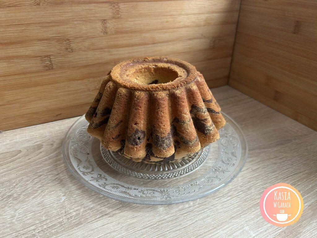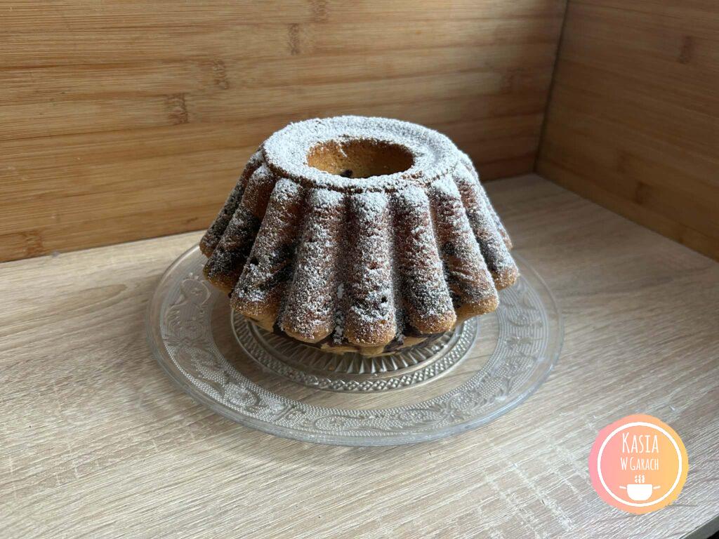 - po upieczeniu ciasto studzimy przez ok 10 minut w uchylonym piekarniku a następnie wyciągamy z piekarnika i odstawiamy do lekkiego przestudzenia, jeszcze ciepłą babkę wykładamy na kratkę lub talerz,