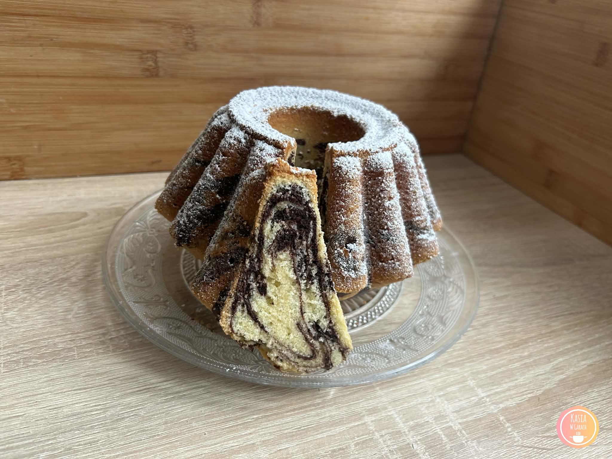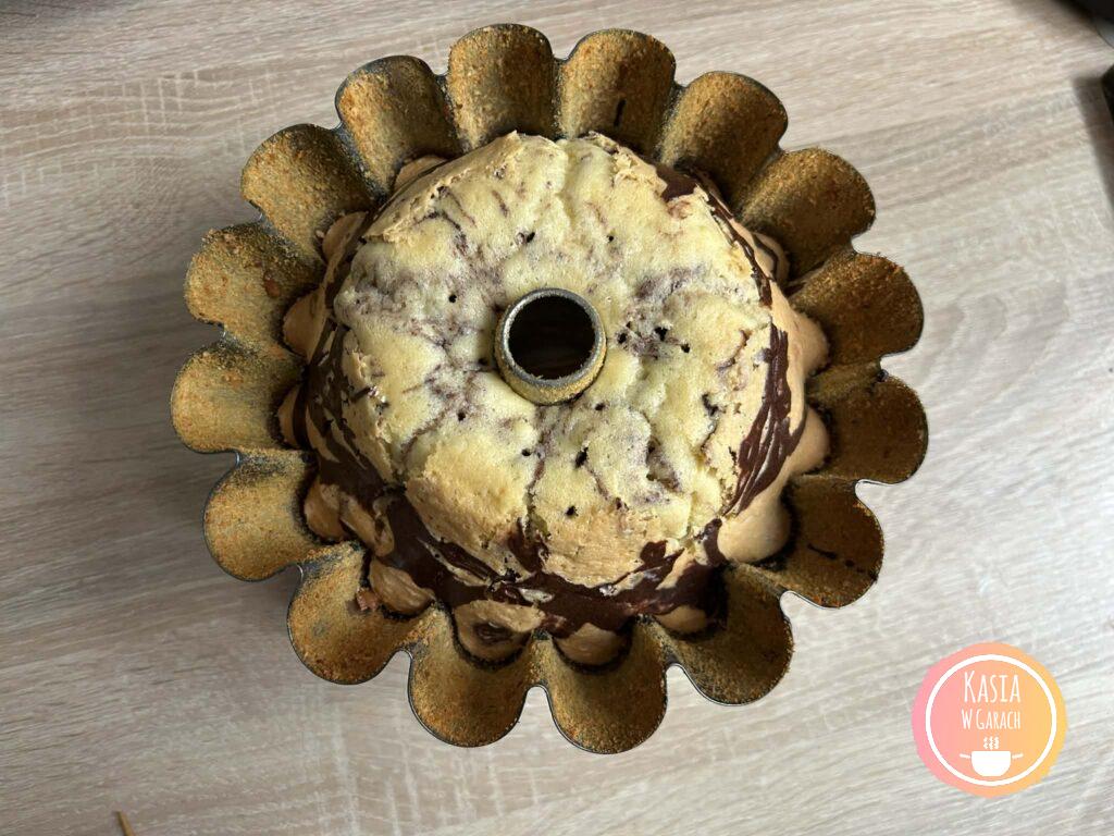 - po upieczeniu ciasto studzimy przez ok 10 minut w uchylonym piekarniku a następnie wyciągamy z piekarnika i odstawiamy do lekkiego przestudzenia, jeszcze ciepłą babkę wykładamy na kratkę lub talerz,