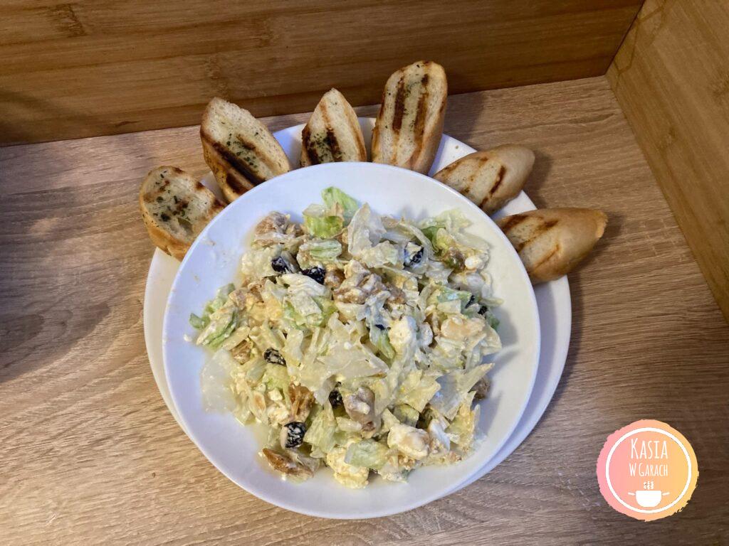 - Sałatka z kurczakiem i żurawiną najlepiej smakuje podana w towarzystwie czosnkowych grzanek.