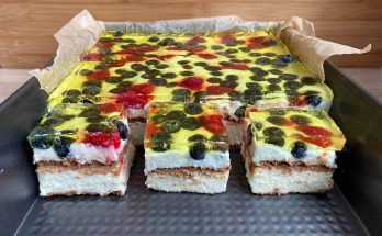 Grysikowa kostka z owocami i galaretką to proste i wyśmienite ciasto bez pieczenia. Idealne na każdą porę roku i pod różne owoce. Banalnie proste w przygotowaniu, z łatwo dostępnych i …